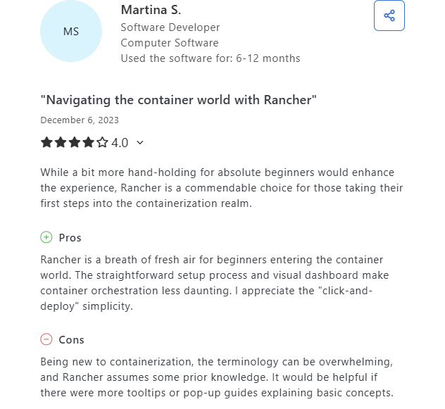 - Higher complexity for new teams: More complex and resource-heavy to deploy and maintain. Portainer wins on simplicity, speed, and cost-efficiency.