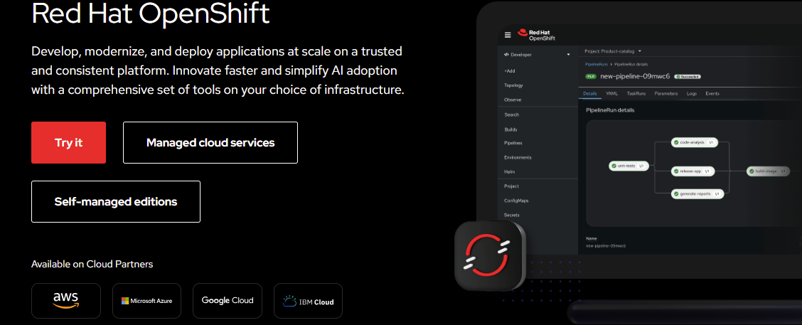 - Fully integrated development experience: Operators and pipelines make it ideal for large organizations looking for an opinionated platform.