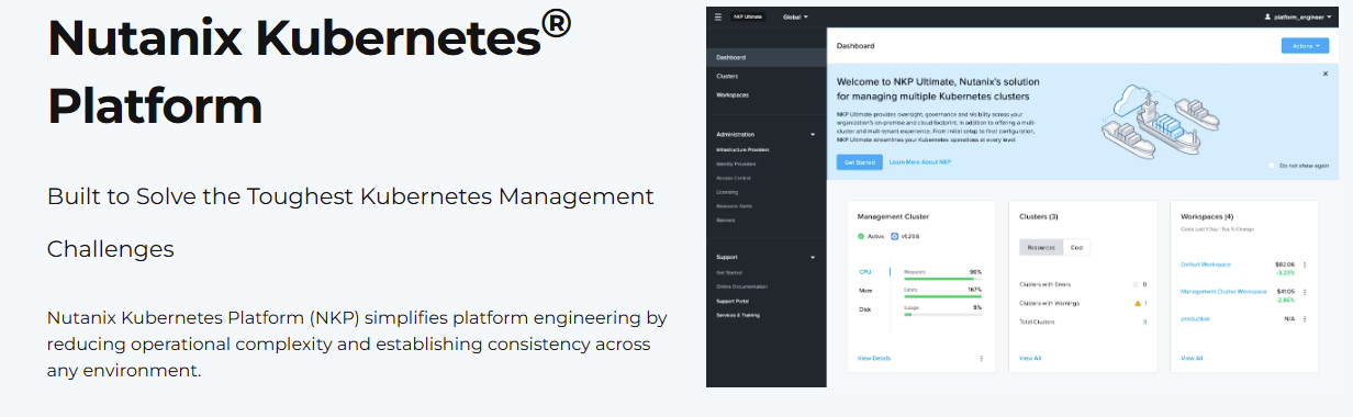 - Operational footprint and maturity trade-offs: Since NKP delivers a full enterprise stack, it may be heavier than simpler management UIs and require time to onboard and tune.