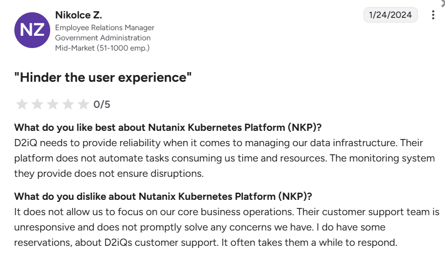 - Platform operator skill required: You need to invest in platform engineering and Kubernetes expertise to operate NKP at scale.