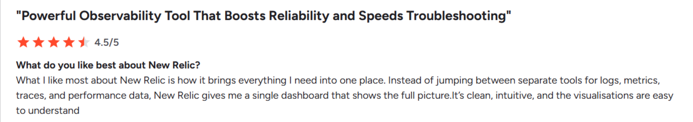 - Learning curve for advanced features: While powerful, configuring custom queries (NRQL) and alerts requires training.