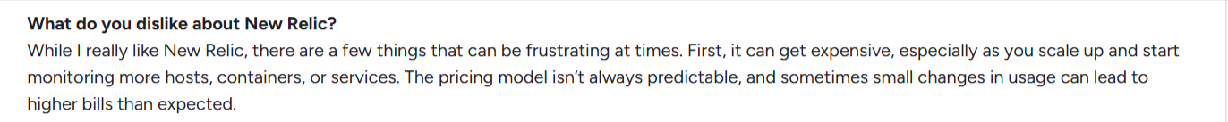 - Pricing complexity: Usage-based pricing (data ingest + user seats) can become difficult to predict. Many users complain that the tool’s cost increases as scale grows.