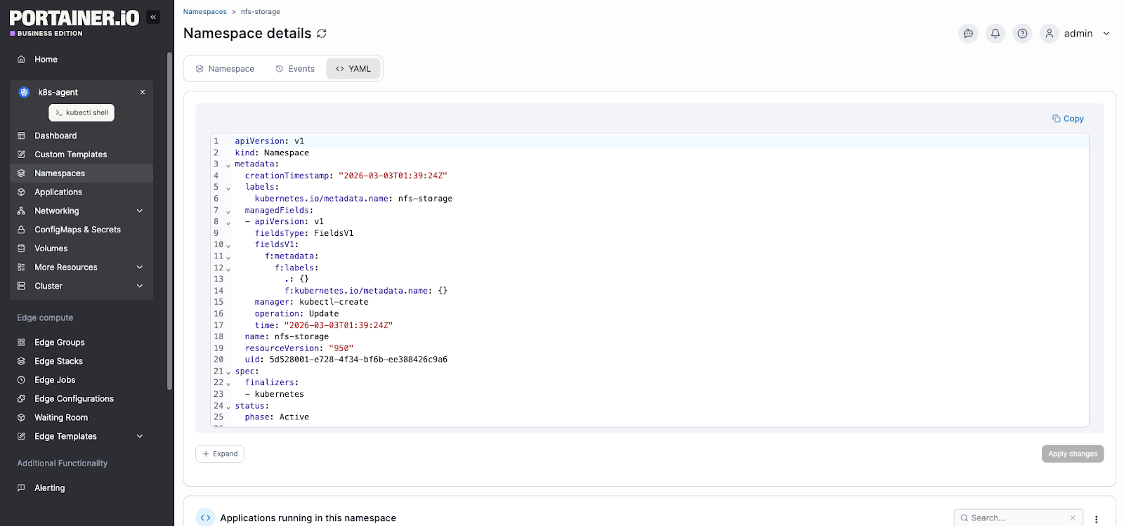 Portainer supports kubeconfig and CLI workflows while offering a visual layer for faster inspection. That balance makes it easier for both experienced Kubernetes engineers and less specialized operators to work confidently.