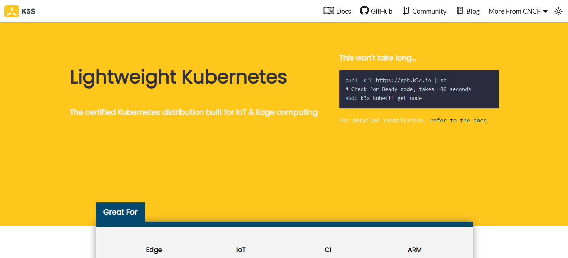 - Easy to set up: K3s installs with a single command and requires minimal configuration to get a working cluster.