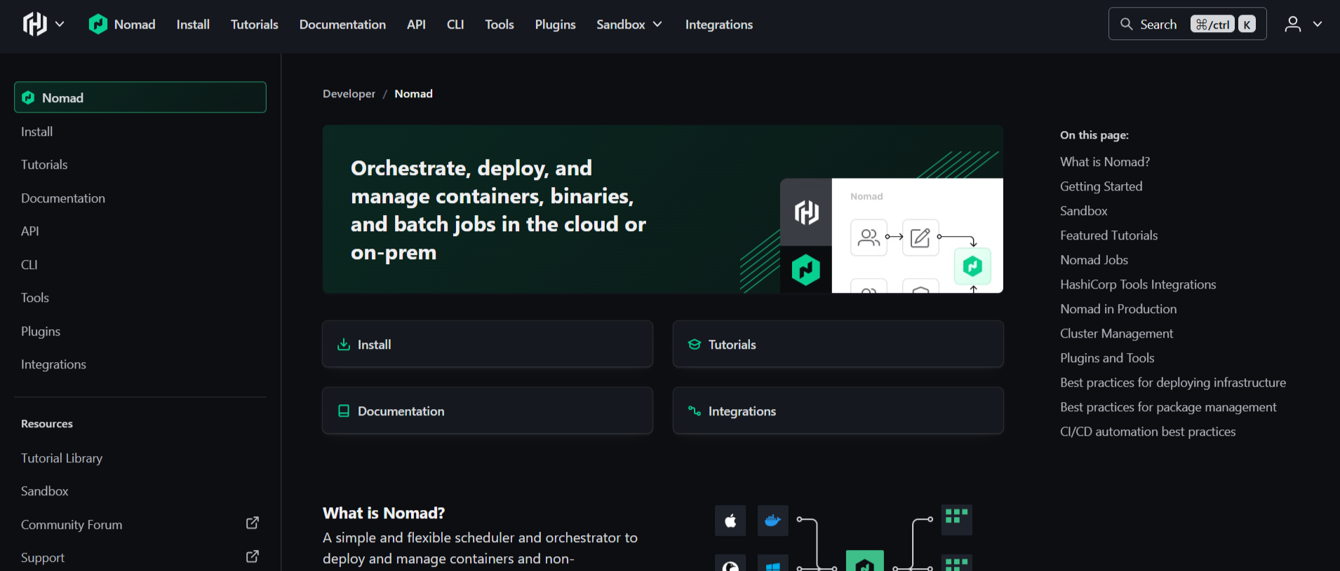 - Single binary architecture: Nomad's entire client and server stack ships as a single binary, making installation and upgrades straightforward across any infrastructure.