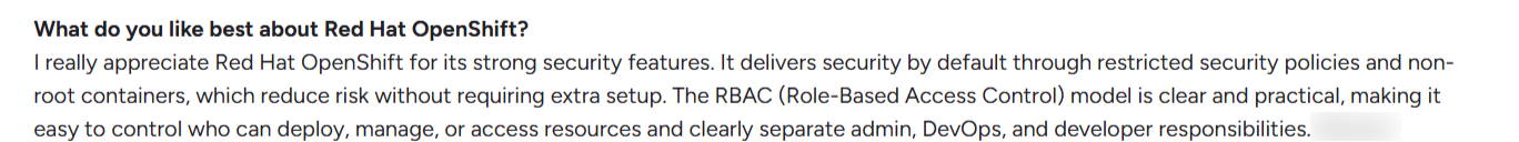 - Hardened security by default: OpenShift enforces Security Context Constraints (SCCs) out of the box, restricting what containers can do at the kernel level without requiring manual policy configuration.