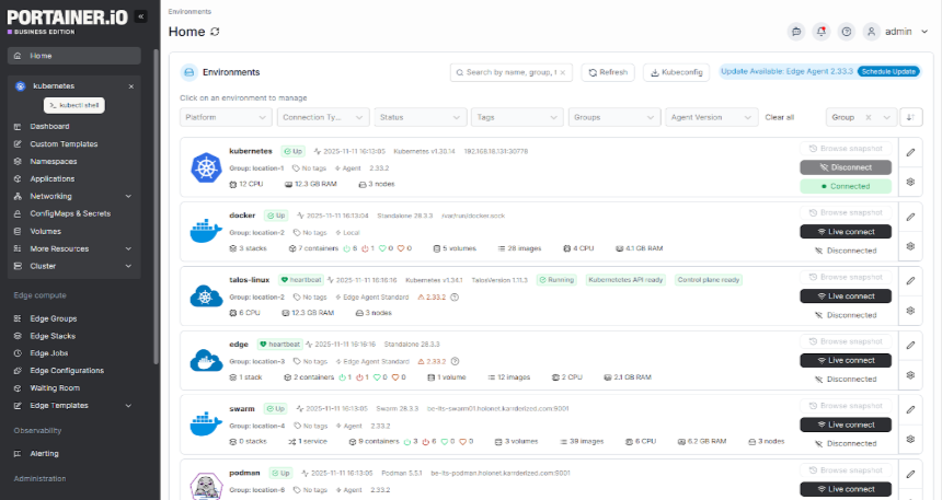 Each of the steps above solves a specific operational problem. Portainer connects all of them inside a single management plane, so you’re not switching between tools to provision clusters, enforce policies, and monitor fleet health.