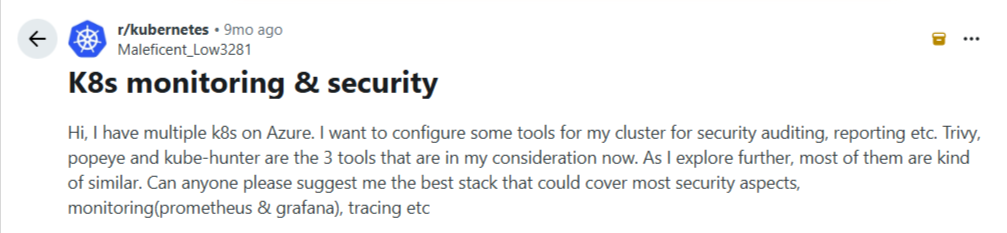 In March 2025, a Reddit user raised a familiar question for many DevOps, security teams, and enterprises: Which Kubernetes security stack actually covers most security risks?