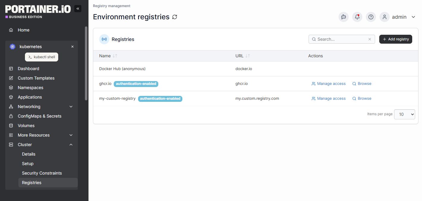 Portainer gives you a clear, centralized way to control who can access clusters, namespaces, and resources. You can assign least-privilege roles, restrict high-risk actions, and keep all permissions consistent across environments. These features reduce accidental changes and strengthen overall governance.