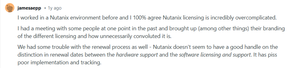 - Licensing and renewals can be difficult to manage: Feedback from Reddit users highlights overly complex licensing models and confusion around renewal timelines, especially between hardware support and software subscriptions.