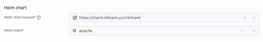 You can now also select chart sources for your deployments, allowing you to easily track where they came from and what changes you have made to your configuration compared to upstream sources.