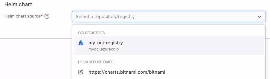 This release introduces support for OCI-format Helm charts via OCI registries to the LTS stream. These registries are configured in the same way as image registries, and any registries you currently have configured (and have given access to the respective namespace) that contain OCI charts will appear in the new Helm chart source dropdown when creating a deployment from Helm.
