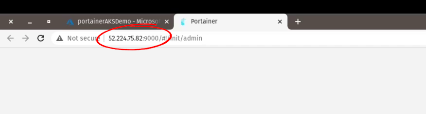 - Next step is to open a new tab or window of the web browser to access the Portainer UI. Make sure to add the port 9000 to the public ip address:
