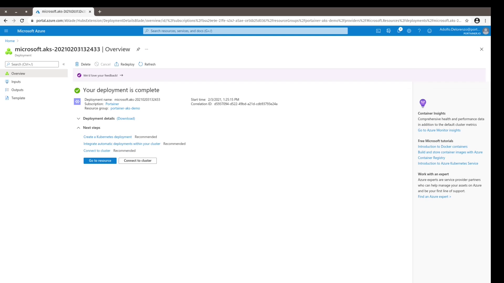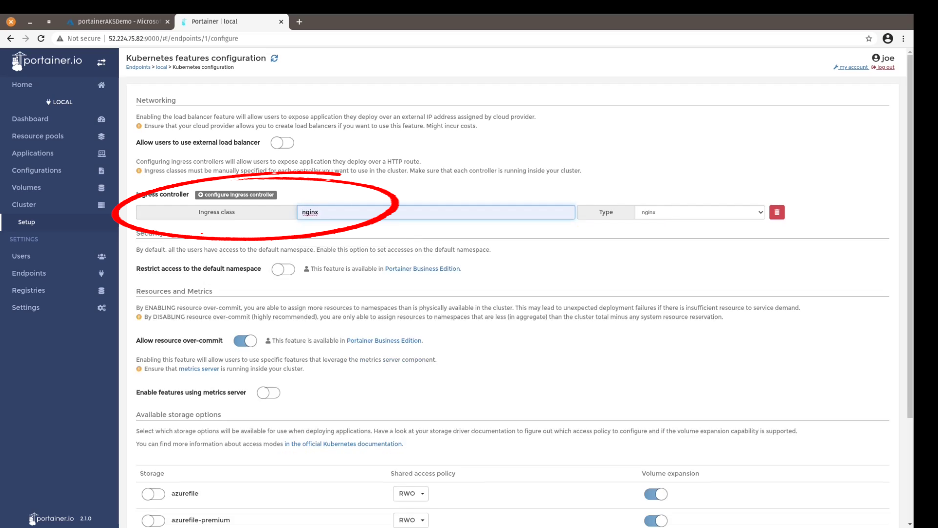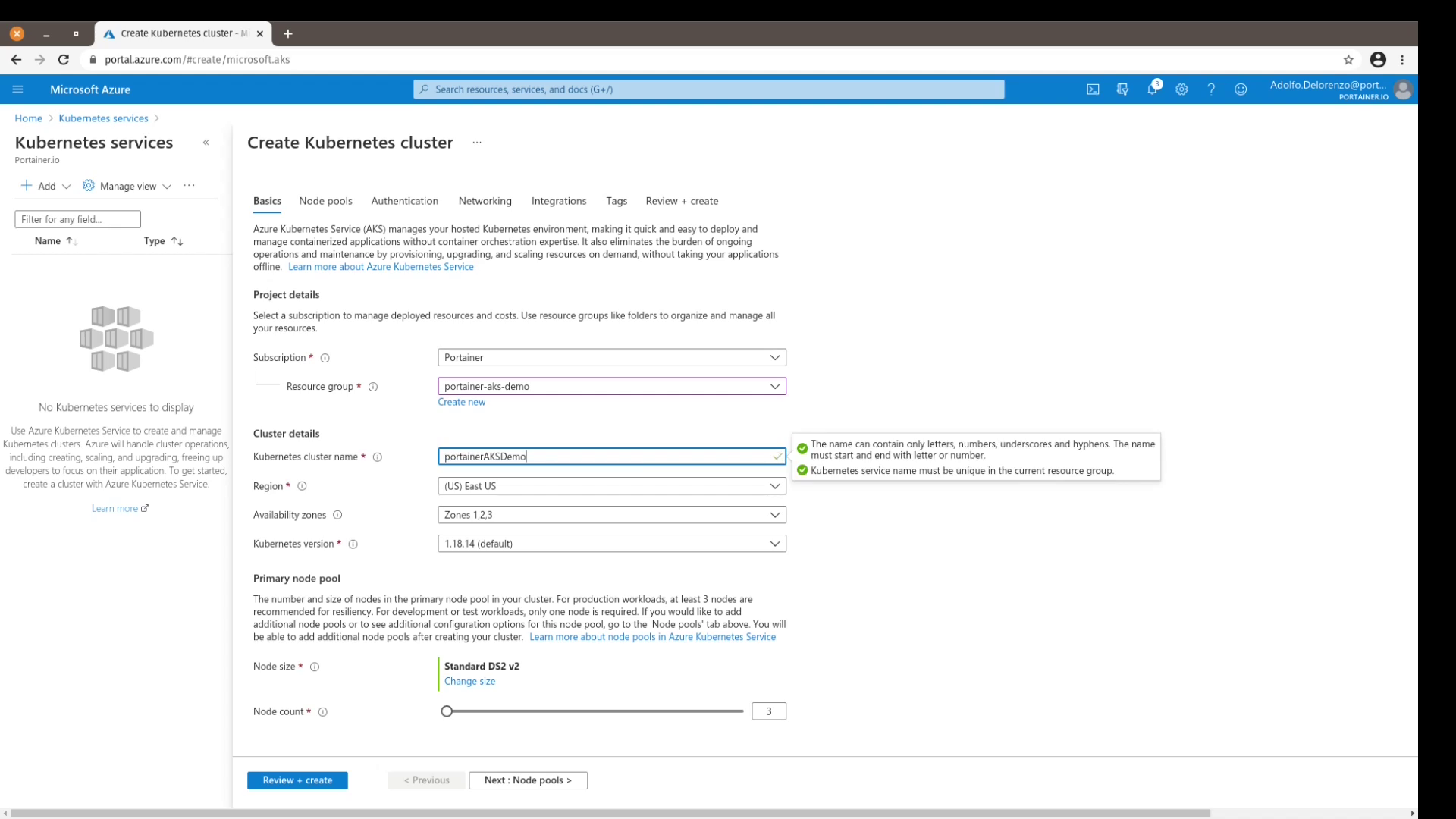 I named my cluster portainerAKSDemo