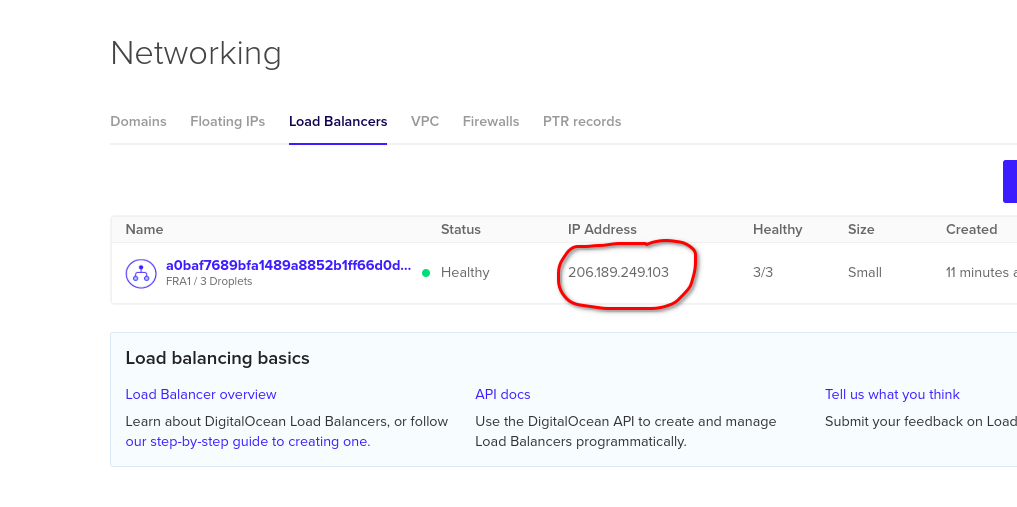 - Next Select Load Balancers and you will have an IP address that will be used to access the Portainer UI. You can copy the IP address by clinking on it.
