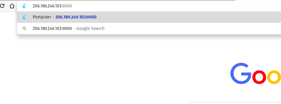 - On a new browser tab or window type or paste the IP address, colon sign and port 9000 to access Portainer: