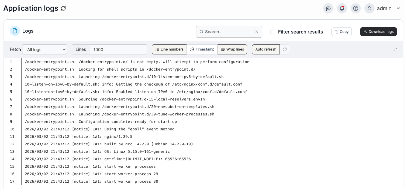 One of the most common troubleshooting tasks is reviewing application logs. In Kubernetes, logs are generated by pods that back your deployments.